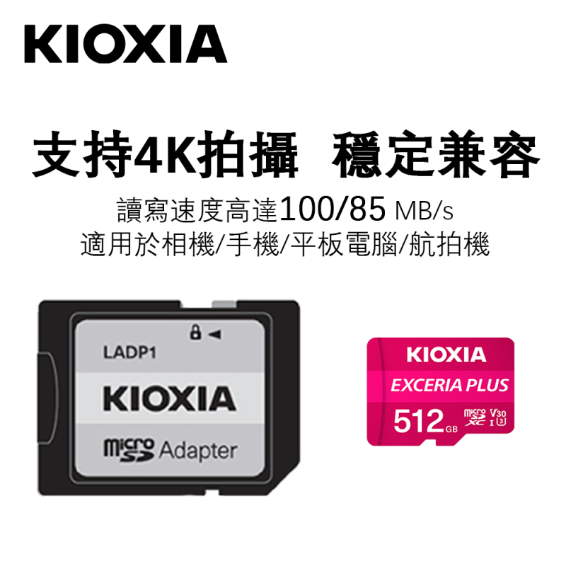 KIOXIA鎧俠 EXCERIA PLUS microSD 記憶卡 512gb A1 U3 C10 V30 附SD轉換器